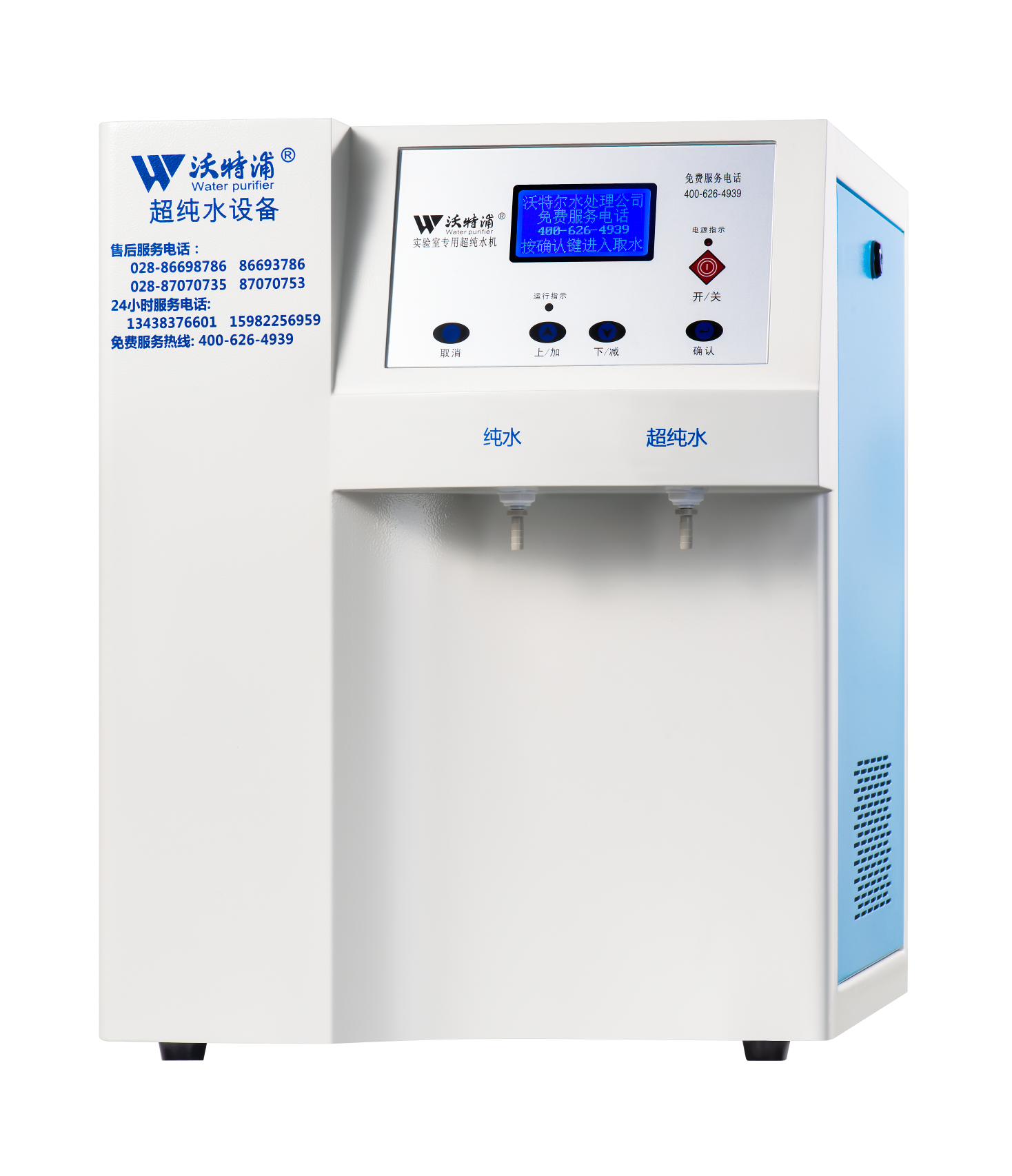 耗材管理:耗材失效真人語音報警及更換提示,耗材失值可據實際需要在1-18.25MΩ.cm間設;耗材更換自動識別,便于更好地管理設備。